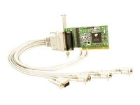 This card provides 4 industry standard RS232 serial COM ports in a single PCI slot. A fully molded quad cable terminated in 9 pin male D plug ensures a reliable connection. As PCI is fully Plug-and-Play compatible the operating system or BIOS automatically configures the card ensuring conflict free installation.