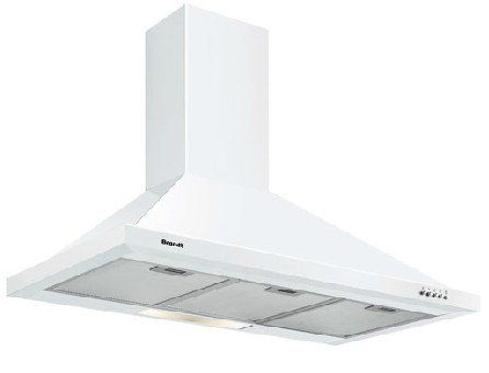 Brandt AD1009W. Maximum extraction power: 615 m³/h, Type of extraction: Recirculating, Noise level: 60 dB. Type: Wall-mounted cooker hood, Colour of product: White, Lamps quantity: 2 lamp(s). Grease filter type: Aluminium, Number of filters: 2 pc(s). Motor power: 190 W, Bulb power: 40 W. Width: 900 mm, Height: 500 mm, Depth: 300 mm