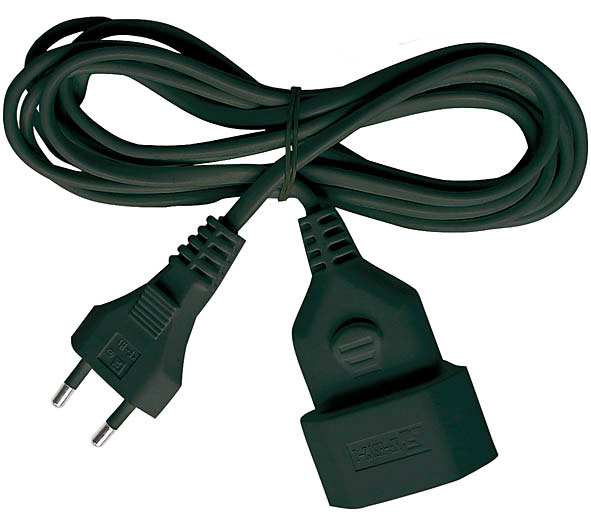 <b>Plastic Extension Cable</b> - With Euro plug and socket. - Flat cable for connecting appliances with a max. of 2.5 A.