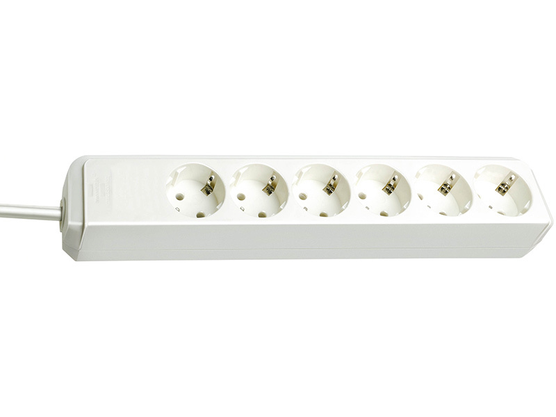 Eco-Line - 1.5 m, H05VV-F 3G1.5, White, 6 outlet Larger cable diameter in accordance with the enhanced EU-standard of 2010!