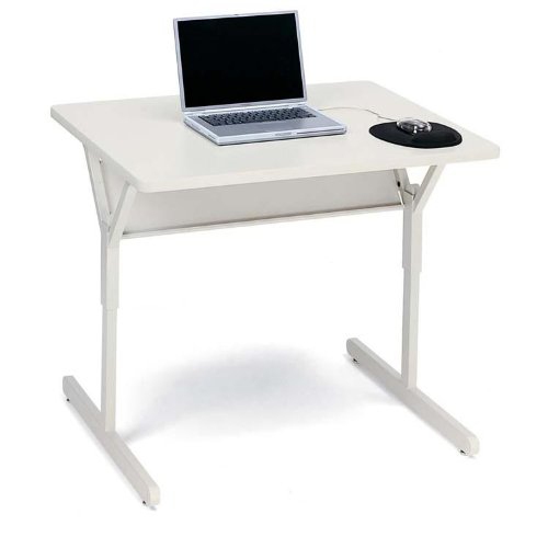 Tables feature 14-gauge steel bases and 1 inch thick tabletops. All have a rear cord management bin with flip down door, with one or two grommets depending on size. The design at the base of the table provides strength and maximum accessibility to the work surface. The extended base support the back and front to reduce top over. Choice of glides or 4" casters.
