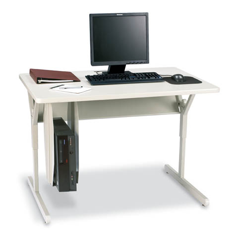 Connections XTC Work Centers provide extra space for a CPU tower and come standard with an adjustable CPU holder (6.5"-11.5"W or 3.5"-5.75"W). Tables feature 14-gauge steel bases and 1 inch thick tabletops. All have a rear cord management bin with flip down door, with one or two grommets depending on size. The design at the base of the table provides strength and maximum accessibility to the work surface. The extended base support the back and front to reduce top over. Choice of glides or 4" casters.
