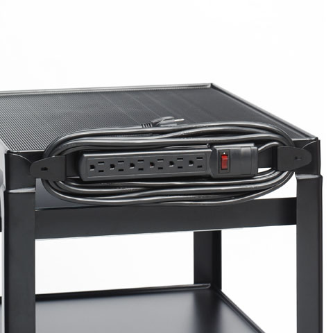 Ribbed black rubber mats lay flat on the top shelf of AV carts. Rubber mat is 1/16" thick.