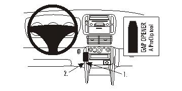 The ProClip is a mounting bracket for the vehicles dashboard. Onto the ProClip you can install e.g. a holder for your mobile phone or PDA or a handsfree set etc. Safe and convenient -always within easy reach. The ProClip is car specific and easy to install. The installation is quick, no special tools or dismantle of the dashboard is required and it will not damage the interior of the vehicle. Made in black ABS plastic. Comes with detailed instructions. Center mount, Low Please read all of the instructions and look at the pictures before attaching the ProClip.