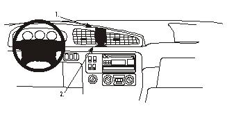 1.Press the upper part of the ProClip into the gap at pos. 1 between the dashboard and hte frame surrounding the air vents.