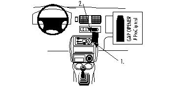 2. Press the gapopener into the gap at pos. 2 between the upper control panel and the padded dashboard. Press the upper part of the ProClip into the gap next to the gap opener at pos. 2.