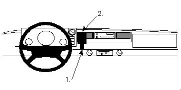 The ProClip is a mounting bracket for the vehicles dashboard. Onto the Proclip you can install e.g. a holder for your mobile phone or PDA or a handsfree set etc. Safe and convenient -always within easy reach. The ProClip is car specific and easy to install. The installation is quick, no special tools or dismantle of the dashboard is required and it will not damage the interior of the vehicle. Made in black ABS plastic. Comes with detailed instructions. Center mount 1. Insert narrow curved part into gap at pos.1.