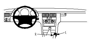 3. Hook the upper left part of the ProClip, with adhesive tape, over the console edge at pos. 2.