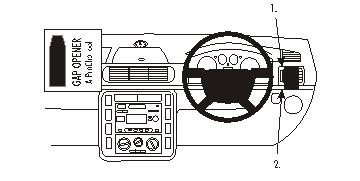 2. Press the curved edge on the upper part of the ProClip into the gap next to the gap opener. Flip the lower part of the ProClip downwards so the curved upper edge hooks behind the dashboard. Pull out the gap opener.