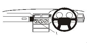 2. Press the angled edge on the right side of the ProClip carefully into the gap between the two padded dashboard parts/dashboard side wall at pos. 1. Press the ProClip all the way in and press in the left side of it so the adhesive tape sticks to the dashboard.