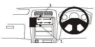 3. Press the anled edges of the ProClip into the gaps at pos.1 and pos. 2 between the control panel and the consoleframe. Press forward on the ProClip until you see or hear/feel it snap into place.