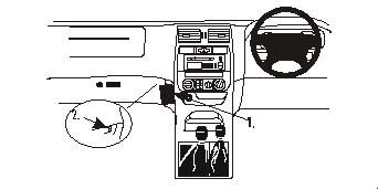 2. Press the right part of the ProClip, with adhesive tape, into the gap at between the dashboard and the frame surrounding the control panel.