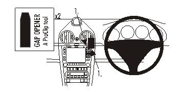 The ProClip is a mounting bracket for the vehicle’s dashboard. Onto the ProClip you can install e.g. a holder for your mobile phone or PDA or a handsfree set etc. Safe and convenient -always within easy reach. The ProClip is car specific and easy to install. The installation is quick, no special tools or dismantle of the dashboard is required and it will not damage the interior of the vehicle. Made in black ABS plastic. Comes with detailed instructions. Center mount Please read all of the instructions and look at the pictures before attaching the ProClip.