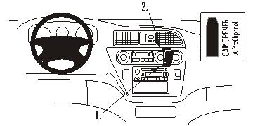 The ProClip is a mounting bracket for the vehicle’s dashboard. Onto the Proclip you can install e.g. a holder for your mobile phone or PDA or a handsfree set etc. Safe and convenient -always within easy reach. The ProClip is car specific and easy to install. The installation is quick, no special tools or dismantle of the dashboard is required and it will not damage the interior of the vehicle. Made in black ABS plastic. Comes with detailed instructions. Angled mount Attention! Please read all of the instructions and look at the pictures before attaching the ProClip.