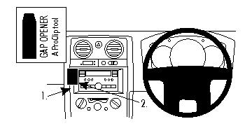 3. Press the gap opener into the gap between the stereo and the surrounding frame. Press forward on the right side of the ProClip so the angled edge goes into the gap above the gap opener. Pull out the gap opener.
