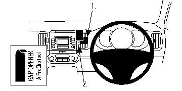 The ProClip is a mounting bracket for the vehicles dashboard. Onto the ProClip you can install e.g. a holder for your mobile phone or PDA or a handsfree set etc. Safe and convenient -always within easy reach. The ProClip is car specific and easy to install. The installation is quick, no special tools or dismantle of the dashboard is required and it will not damage the interior of the vehicle. Made in black ABS plastic. Comes with detailed instructions. Center mount Please read all of the instructions and look at the pictures before attaching the ProClip.