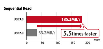 5.5 times faster sequential reads than available with USB 2.0-boosts speeds from 33.2 MB/s to 185.3 MB/s.