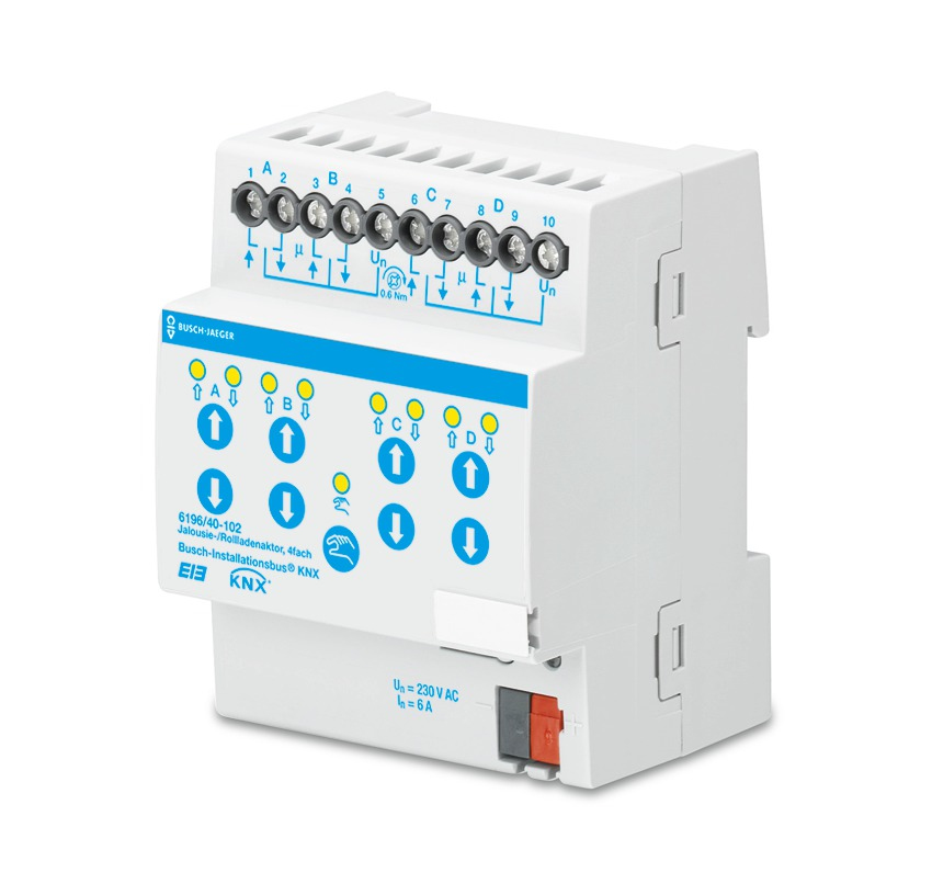 Busch-Jaeger 6151-0-0217. Product type: Blind/shutter actuator, Mounting type: DIN rail-mounted, International Protection (IP) code: IP20. Power source type: AC, Input frequency: 50 - 60