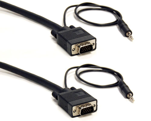High quality SVGA Cables with stereo audio connectors, They feature a low loss, TRIPLE shielded design to keep out RF and EM interference. They also come with durable molded HD15 connectors with thumbscrews for a secure connection and molded 3.5 (1/8") mini plugs. Great for connecting high resolution monitors and hi def TV's with PC A/V inputs.