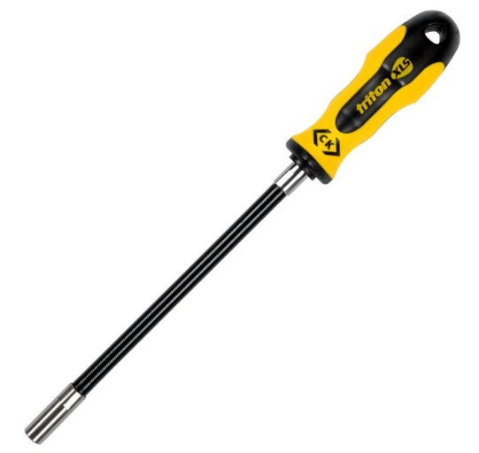 Strong yet flexible shaft for access to screws and fixings in awkward places. Soft grip tri-lobe handle for exceptional comfort and control. Magnetic bit holder for positive bit retention. For use with 6mm - 1/4" hexagon screwdriver bits (not included).