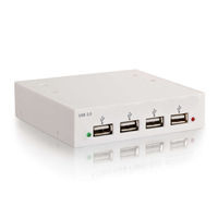 The Cables To Go USB 2.0 High-Speed Front-Bay Hub has 4 ports that will connect to either USB 2.0 High-Speed or USB 1.1 peripheral devices. The internal USB hub can be mounted into any 3.5 inch drive bay allowing for hassle free front-side connection of USB devices. With four downstream ports, it is designed to work with mice, keyboards, CD-R/RW's, hard drives, webcams, flash card readers and other USB enabled devices.