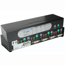 The TruLink™ DVI and PS/2 KVM with Audio allows you to control four computers with one monitor, keyboard, and PS/2 mouse console. The DVI (Digital Visual Interface) supports both digital video input (flat panel displays, data projectors, plasma displays, digital TVs and set-top boxes) and analog video input (traditional monitors and TVs). The audio function enables a single microphone to provide audio input to each of the computers. In addition, you can listen to the audio output of each computer on a single set of speakers. Plus, TruLink’s independent (asynchronous) switching feature allows you to listen to audio files from one computer while you work on the other.