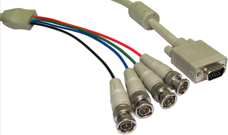SVGA to BNC cable, colour coded BNC connectors red, blue, green and black.