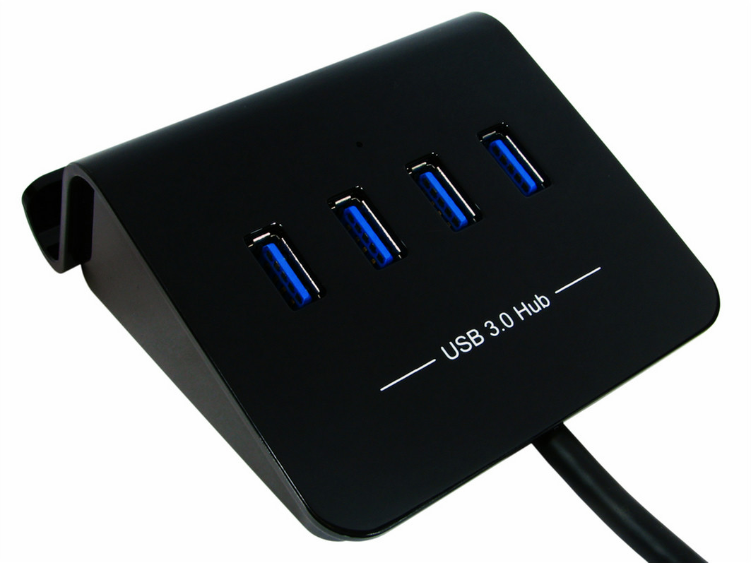 <b>4 Port USB3.0 Hub with Stand, Rapid Charging and OTG - Black</b>