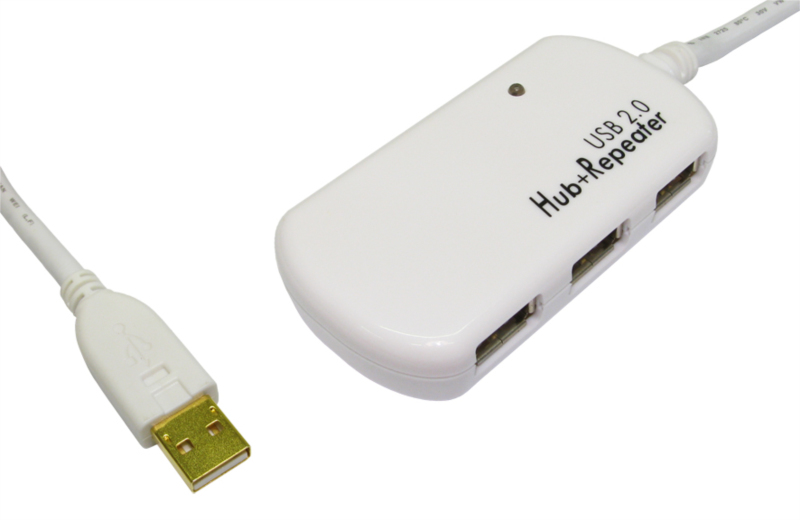 USB 2.0 Cable Repeater with 4 Port Hub - 12m