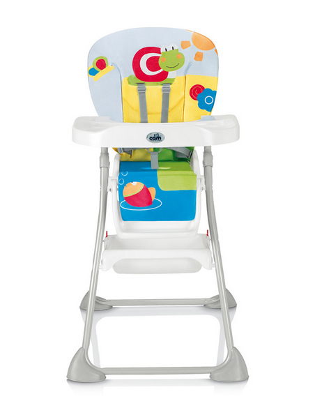 - Provided with an extremely well padded seat, 5-point harness, and a wide tray for meals;
