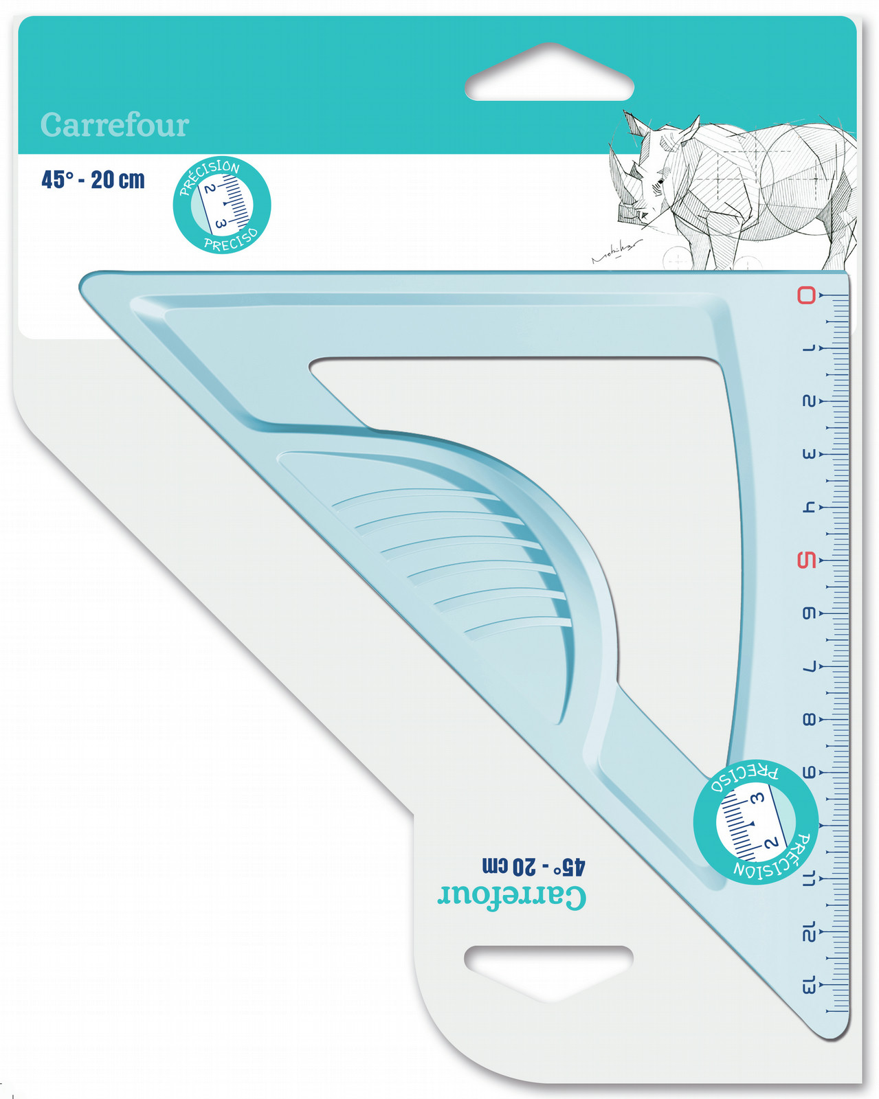 Carrefour 3270192696795. Type: 45° triangle, Colour of product: Transparent. Side length: 20 cm. Quantity per pack: 1 pc(s). Package type: Hanging bag