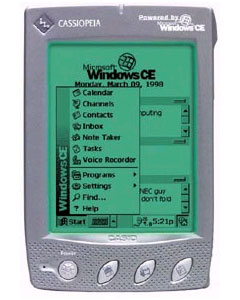 Cassiopeia E-10 Palm-size PC is a breakthrough in mobile information management. Its compact, lightweight size and large bright back-lit display make the E-10 the perfect tool for information on-the-go (modem required-sold separately). And because the E-10 operates on the versatile Windows CE platform, you can be sure that your investment will accommodate you as your mobile information needs grow. With pen-based navigation and long battery life, it's the perfect tool for remote connectivity (modem required-sold separately) and contact management.