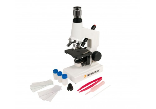 The entry-level Celestron Microscope Kit with magnification from 40x to 600x is the perfect tool for the budding scientist. At high power, it’s ideally suited for examining specimen slides of yeasts and molds, cultures, plant and animal parts, fibers, bacteria, and more. Use the lower magnifications to examine objects like coins, rocks, insects, and more. Start out by using the provided specimen slides, and then create some of your own!