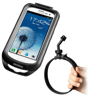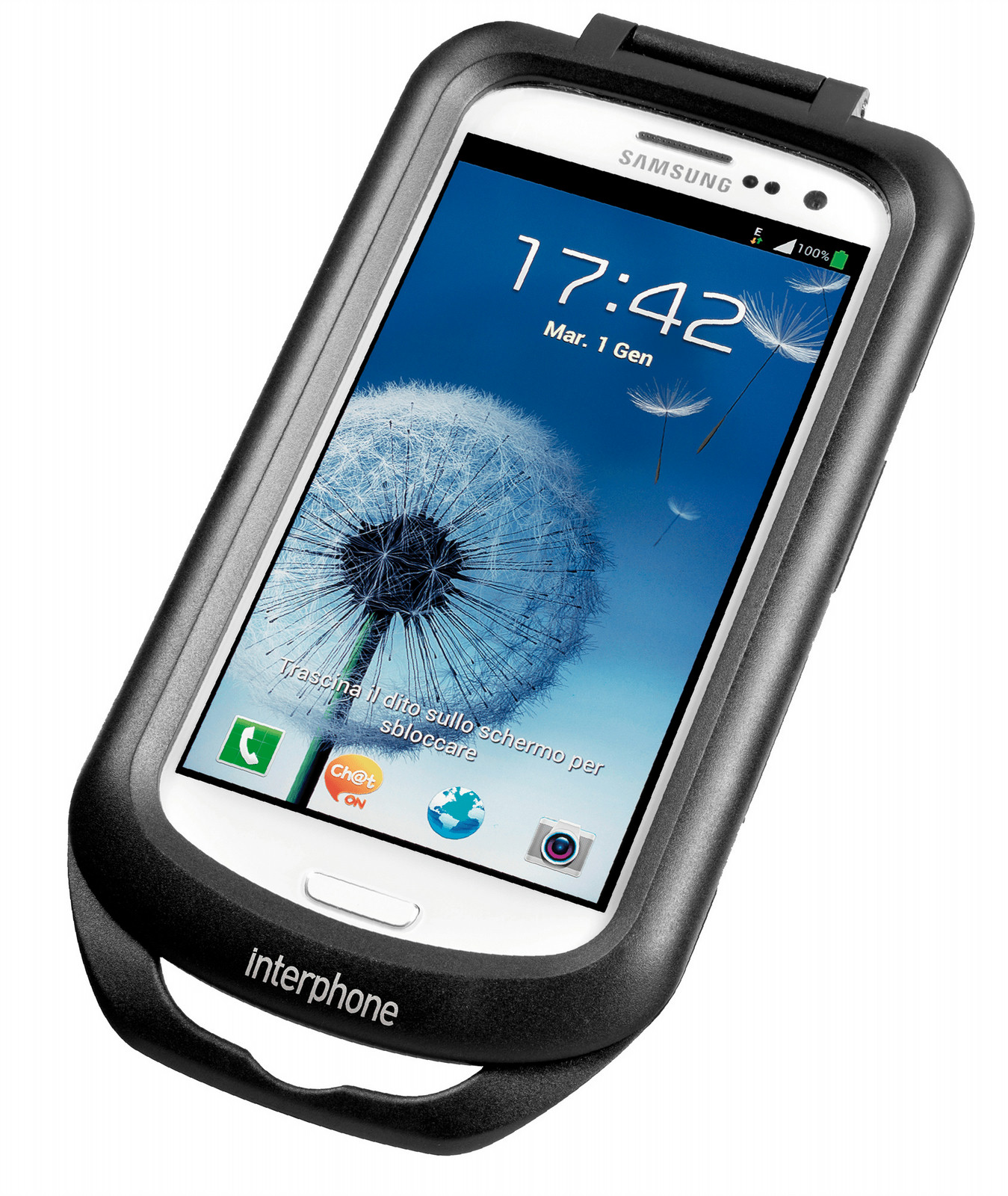 Water resistant case for carrying GALAXY S III® on motorcycles and bicycles. A very sturdy external housing and knock-proof internal rubber shell provide your device with total protection. The mounting bracket with safety closure is adjustable over a full 360° so you can arrange your GALAXY S III® in the best position possible. All GALAXY S III® functions are available with the phone in the case, including the Touch Screen function, plugging in the earphones, and using the battery charger.