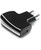 Ultra-light mains battery charger with USB socket, Black/Silver