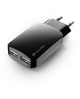 Cellularline ACHUSBDUAL3ATAB. Charger type: Indoor, Charger compatibility: Universal, Power source type: AC. Colour of product: Black. Input voltage: 110 - 240. Package weight: 119 g. Package type: Hanging box