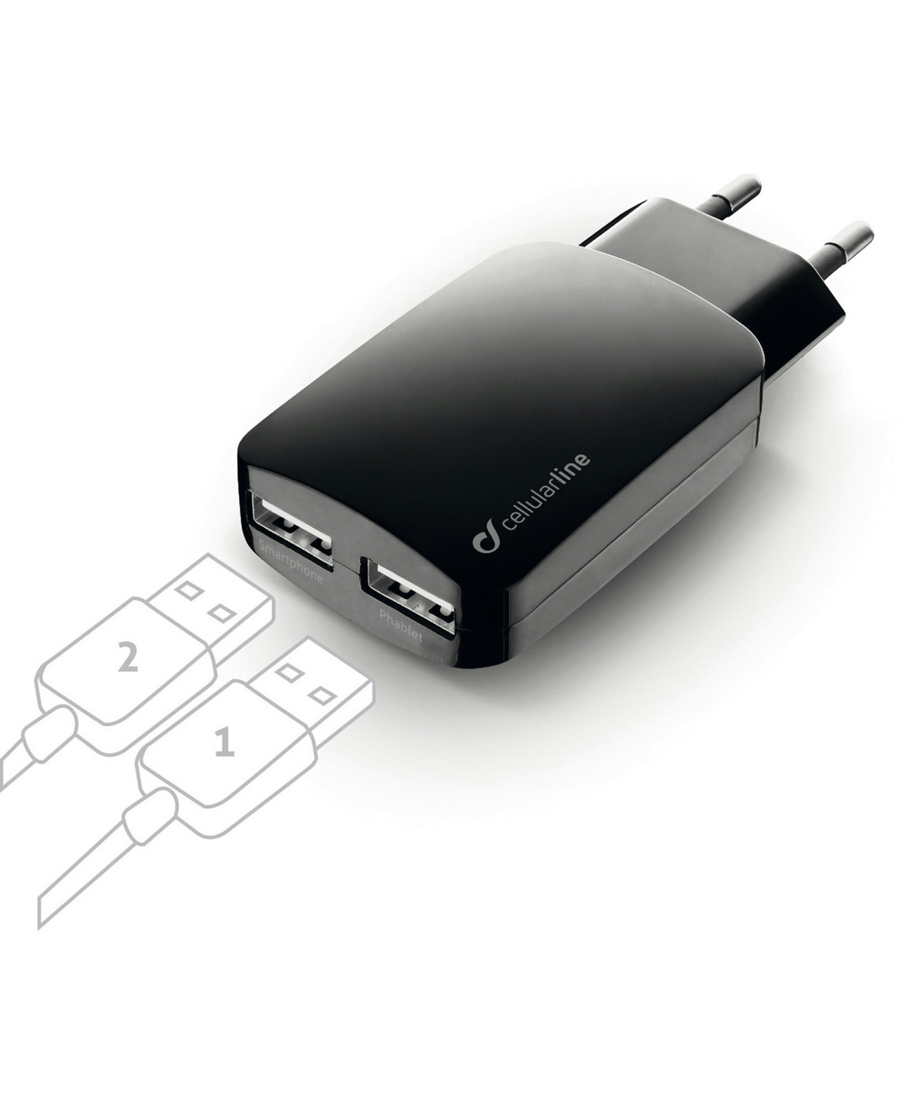 Battery charger, with double USB port, that can charge two devices at the same time.