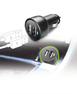 Car charger, 12/24 V, 5 V/3.1 A, 2 x USB