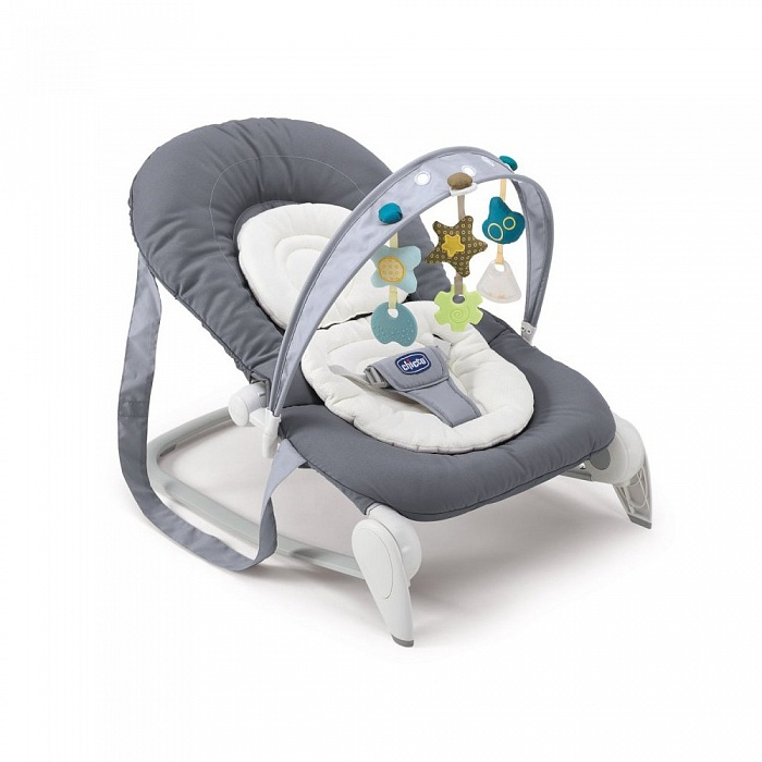 Hoopla’ is equipped with a 3 toy set; each hanging toy has tactile activities in fabric and machanical activities such as toothing ring and rattle, for stimulating the development of the child. Each single colour of Hoopla’ bouncher chair is already coupled to a 3 toys set with funny shapes and colours!
