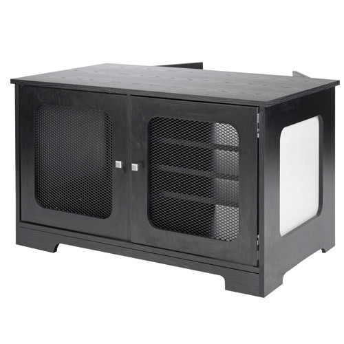 Boardroom Group Double Credenza with 2, 12U racks and perforated steel front doors.