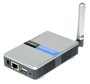 Cisco WPS54G print server. Network connection type: Wireless LAN. Supported network protocols: IEEE 802.11g, IEEE 802.11b, IEEE 802.3. Weight: 110 g. Minimum system requirements: -300 MHz or Faster Processor -128 MB of RAM -CD-ROM Drive -Printer with USB 1.1 or USB 2.0 Port (Mul. Dimensions (WxDxH): 133 x 70 x 25 mm, Interface: USB