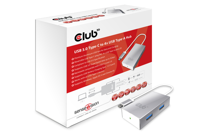 Club3D USB 3.0 Hub Type-C to 4x USB3.0 High Speed