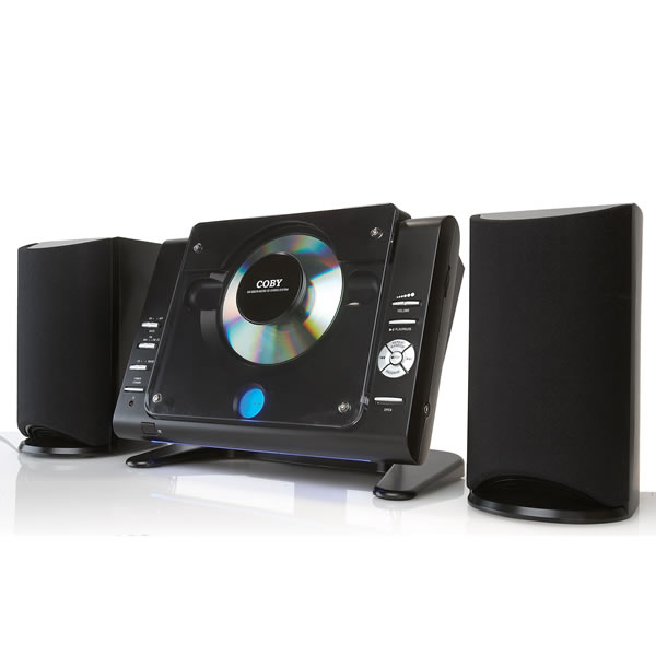 Introducing the Coby CX-CD377 Micro CD Player Stereo System with AM/FM Tuner. This stunning state-of-the-art stereo player has a sleek, jet black design with vertical loading CD player and electronic volume control. A full-range speaker system and Dynamic Bass Boost System (DBBS) provide superb audio playback.