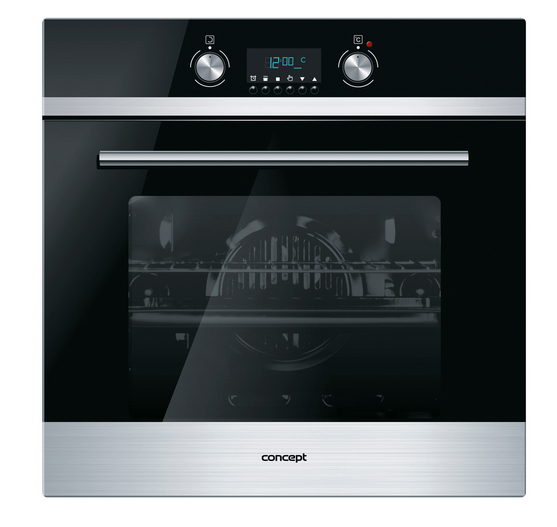 Concept ETV-6460. Oven type: Electric oven, Total oven(s) interior capacity: 66 L, Total oven power: 3350 W. Colour of product: Black, Stainless steel, Control type: Rotary, Integrated clock: Electronic. Timer type: Digital. Energy efficiency class: A-20%, AC input voltage: 230 V, AC input frequency: 50 Hz. Width: 595 mm, Depth: 585 mm, Height: 590 mm