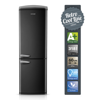 Concept LKR 7360. Case design: Freestanding, Colour of product: Black, Door hinge: Right. Total net capacity: 318 L, Climate class: N-T, Noise level: 45 dB. Fridge net capacity: 231 L, Lamp type: LED. Freezer position: Bottom-placed, Freezer net capacity: 87 L, Freezing capacity: 4.2 kg/24h. Energy efficiency class: A+, Annual energy consumption: 305 kWh, Energy usage: 0.836 kWh/24h