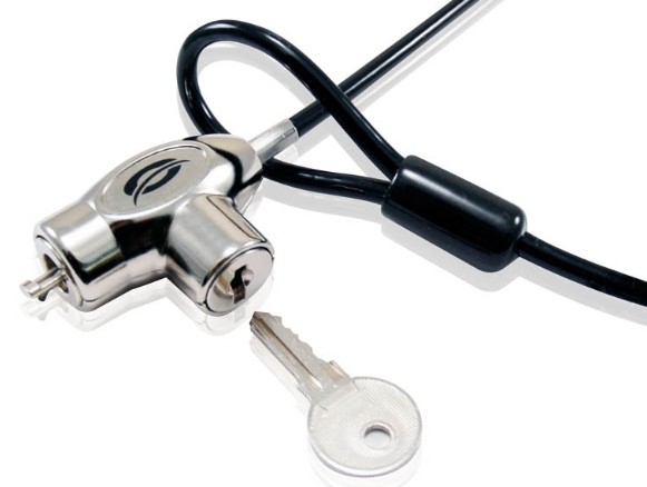 Notebook security lock, 1.8m The cable lock (CKNBLOCK) secures notebooks against theft. The Cable Lock fits on every notebook with a security connection. Just secure the 1.80 meter cable to a firm object (for example a table) and connect it to the notebook. Including 2 keys.