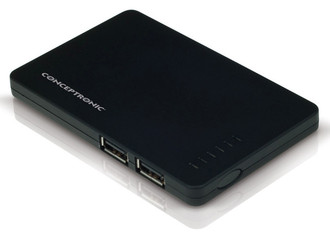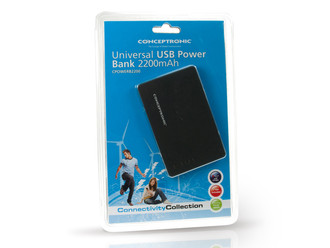 You never have any reason to carry your devices empty when traveling! Did you ever find a device with an empty battery when you most needed it With this powerful but compact  CPOWERB2200  you are able to easily charge 2 of your portable devices at the same time like PSP mobile phone MP3/MP4 player iPod/iPhone and many more devices Charge the Power Bank through any USB charger Conceptronic CUAPTFOLD CUAPTTRAV or USB port on your computer and you are ready to take it with you while traveling!  Charge it during 5 hours and enjoy charging several devices at the same time without any problem This Power Bank has a compact design black rubberized finishing and comes with a comfortable travel pouch to keep all tips together.