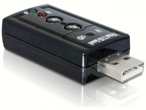 The Delock USB Sound adapter 7.1 expands your computer by one additional Soundcard. Just plug the adapter to a free USB port of your notebook or PC and connect your headset or speaker to it. Using a headset it is especially suitable for applications like Skype.