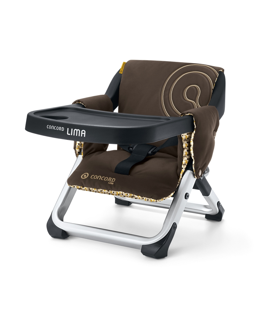 Small, compact and ideal for taking away with you. The CONCORD LIMA travel high chair combines functionality suitable for children with a clean contemporary design. It can be attached to any normal chair in a single operation – enabling the child to be fully integrated into the family. The fittings take into account the requirements of parents and child alike, from the soft padded washable covers, to the integrated lap belt and the removable tray. The high chair can be quickly and easily folded up. Small, compact and convenient, the CONCORD LIMA is ideal for taking away with you.