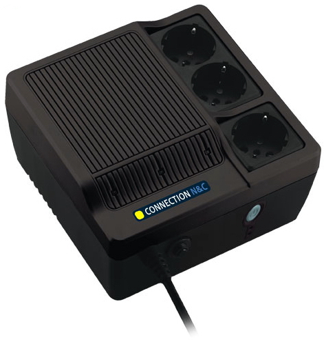 Connection N&C CNC AVR-600. Output power: 360 W, Output voltage: 230 V, Output voltage note: 220 - 240 V. Colour of product: Black, Housing material: Plastic. Width: 166 mm, Depth: 161 mm, Height: 86.7 mm